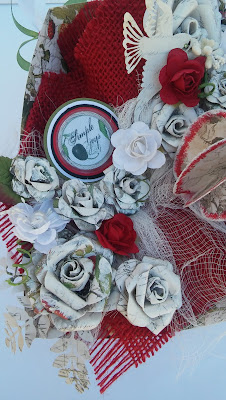 Green Rhinestone, Red Hessian, Gauze, Flowers, Leaves, Paper Straws, Ribbons